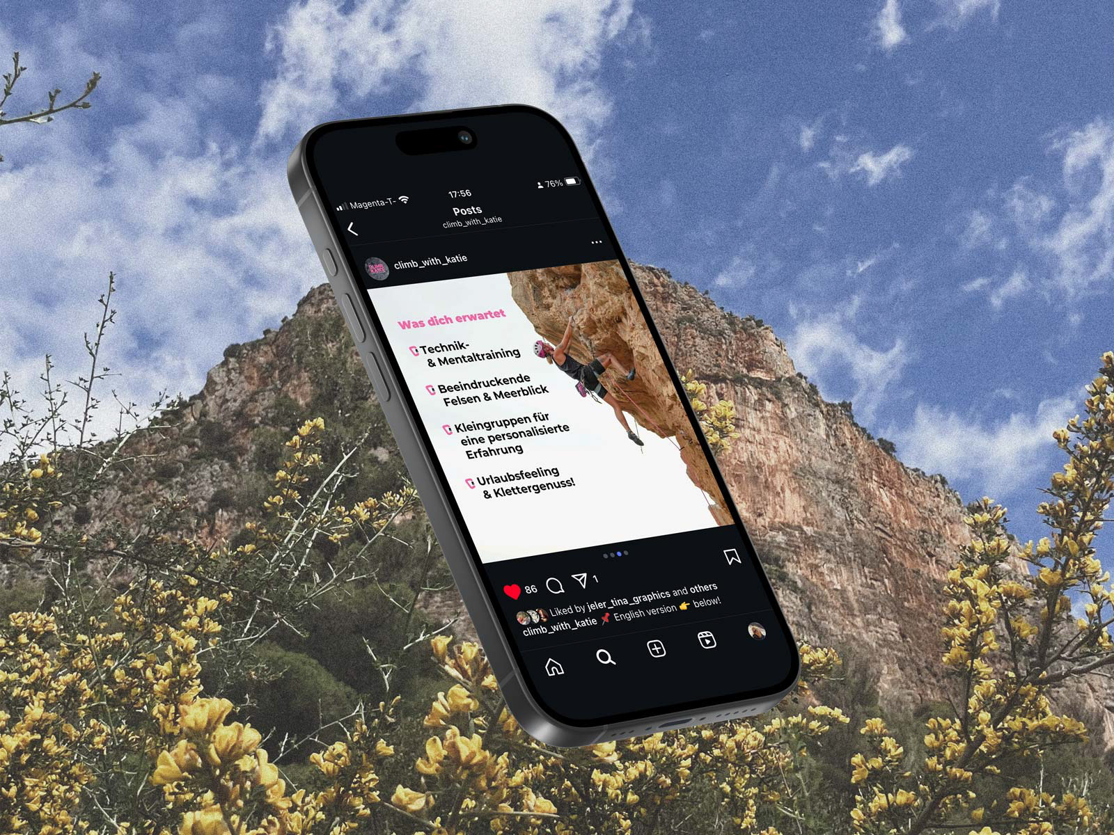 I designed a logo, brand identity, and style guide for climbing instructor Katie, capturing the energy and movement of climbing. The letter “C” transforms into a carabiner for instant recognition, while vibrant pink reflects Katie’s personality and unique style.
