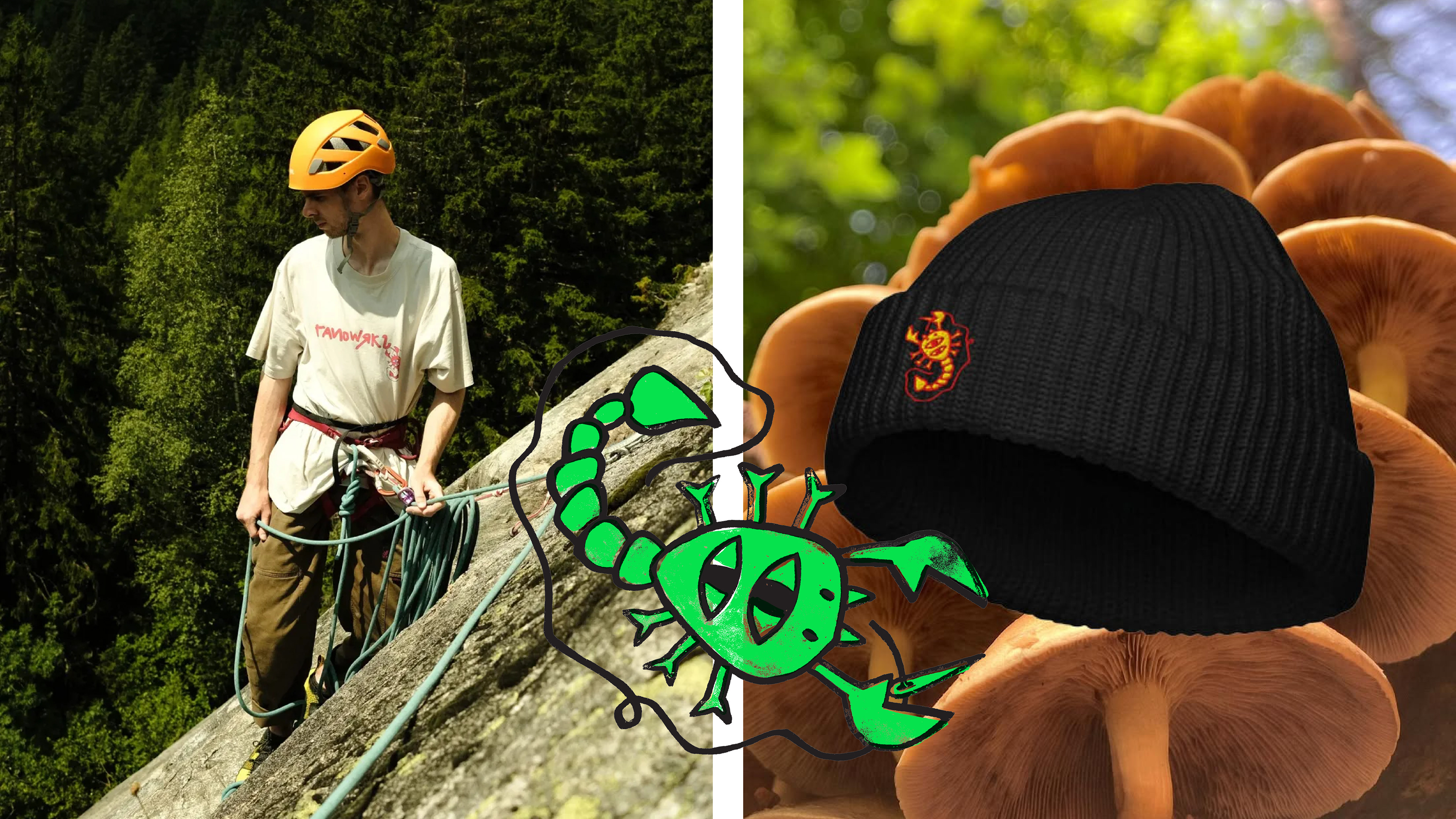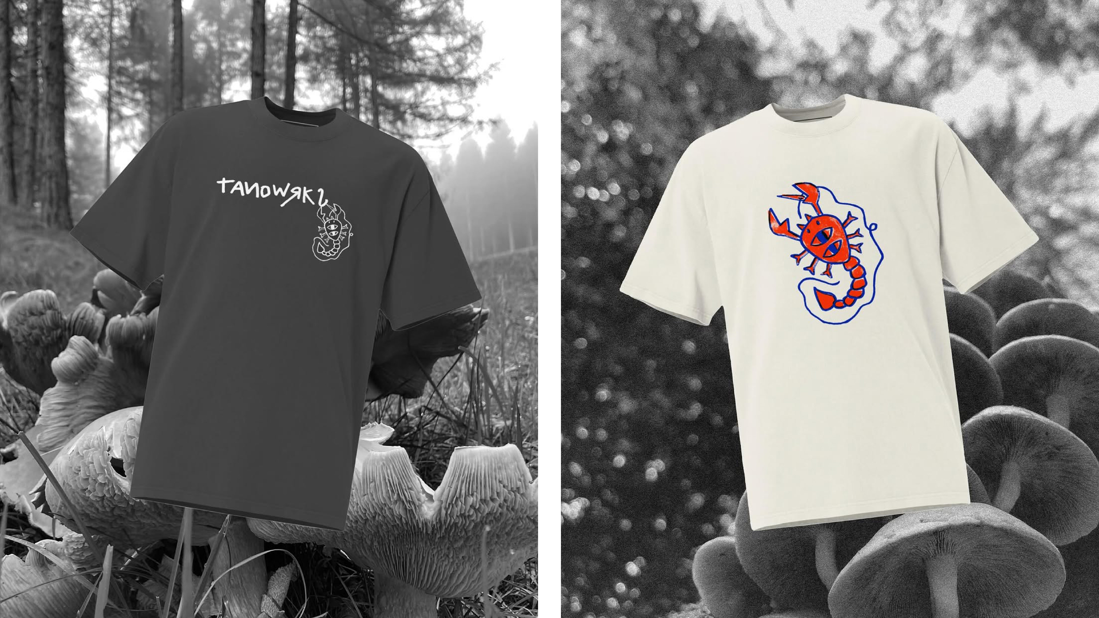 The scorpion illustration was developed for application across t-shirts, bags, and accessories, creating a bold and recognisable visual element throughout the collection.